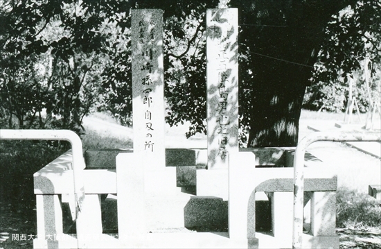 天王寺区生国魂神社前 島男也旧居の碑 川崎孫四郎自刃の跡の碑