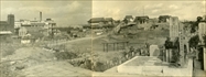 高津橋から東方 かつてあった高津入堀(遠景は生玉高台)
